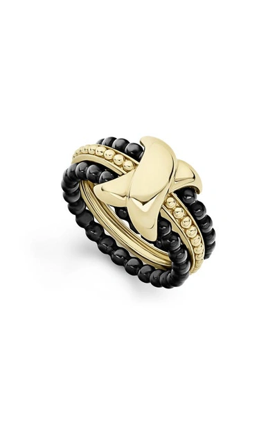 Meridian 18k Yellow Gold & Ceramic Caviar Stack Ring In Gold/black