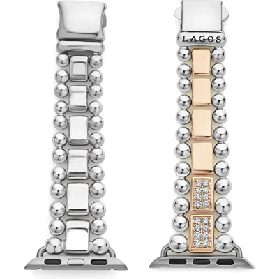 Smart Caviar Sterling Silver 18k Gold Apple Watch Bracelet, 38-44mm In Silver/ Gold