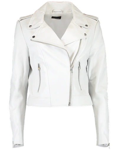Kelsey Leather Biker Jacket Champagne Hardware In White