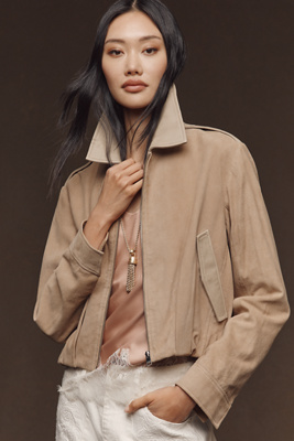 Robbie Suede Bomber Jacket In Sand