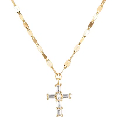 Baguette Diamond Mini Cross Pendant Necklace In Gold