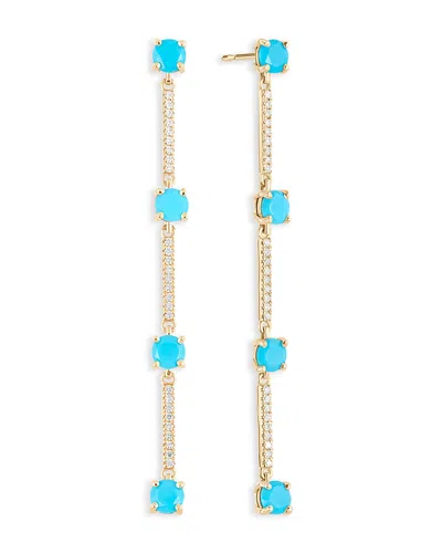 Jewelry 14k Yellow Gold Turquoise & Diamond Linear Drop Earrings
