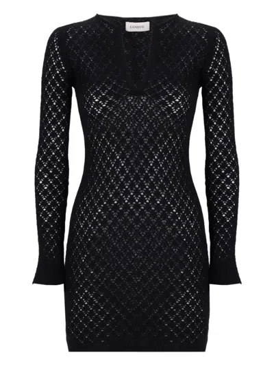 镂空针织V领迷你连衣裙