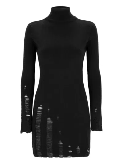 高领仿旧针织迷你连衣裙