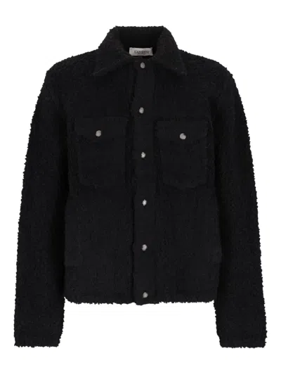 Textured Fabric Long Sleeve Jacket For Men In Black