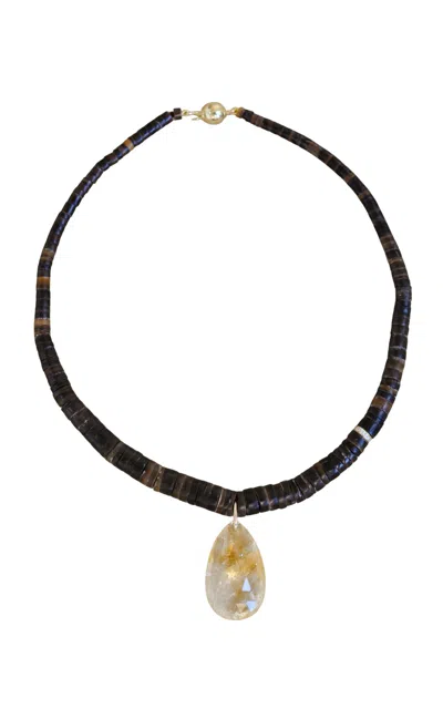 14k And 18k Yellow Gold The Drop Collar Smoky Quartz In Black