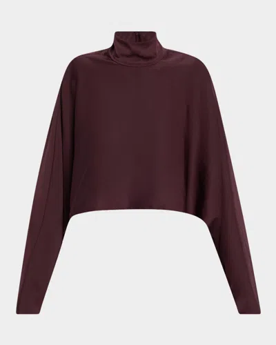 Mock-neck Lightweight Georgette Ruched Top In Purple