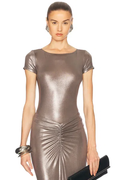 Coated Jersey Short Sleeve Mock Neck Bodysuit In Steel