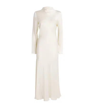 Satin Draped Midi Dress In White
