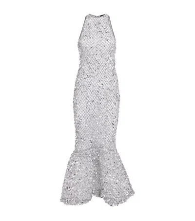 Sequinned Fishtail Midi Dress In Silver