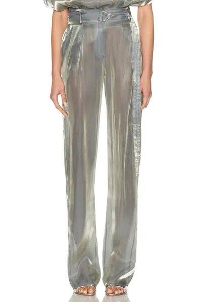 Metallic Organza Belted Pant In Silver