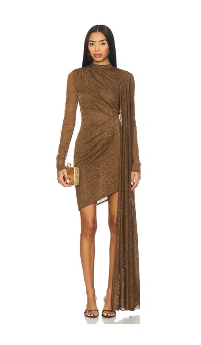 Coated Jersey Deep V Neck Mini Dress In Pale Gold