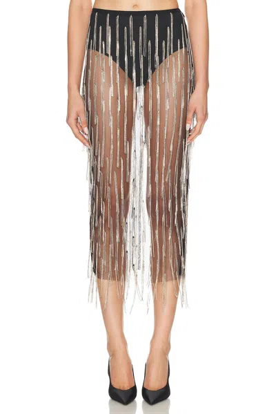 Rhinestone Fringe High Waist Skirt In Transparent