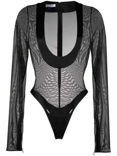 Illusion Stripe Turtleneck Bodysuit In Black