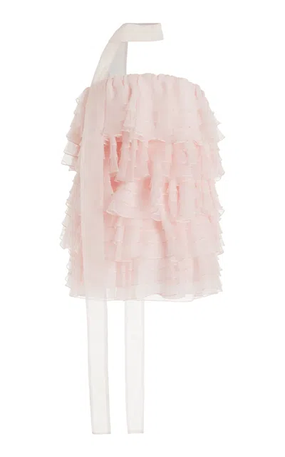 Strapless Ruffled Silk Mini Dress In Light Pink