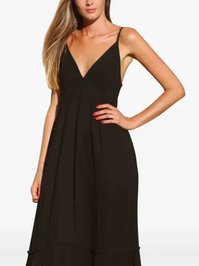 Tiered V-neck Maxi Dress In Black