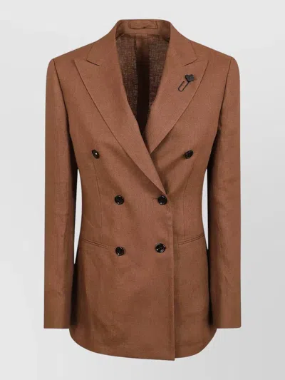 Womens Jacket Double Breasted Notched Lapels In Brown