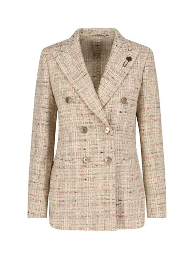 Double-breasted Blazer In Neutral