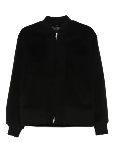 Wool Zip-front Bomber Jacket In Black