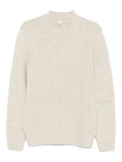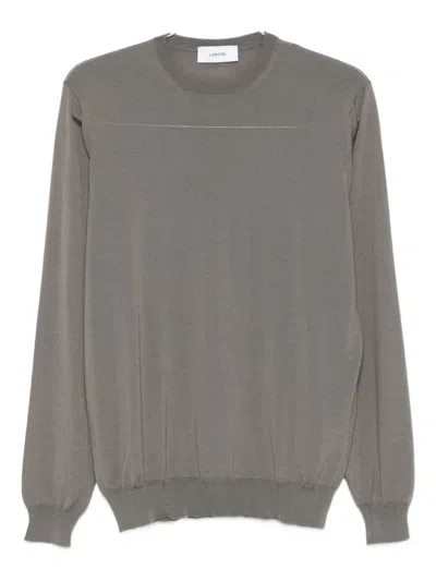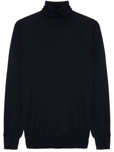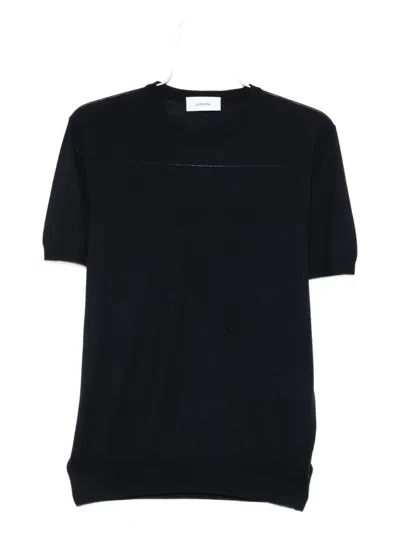 Black Round Neck Sweater With Long Sleeves In Wool And Silk Blend Man
