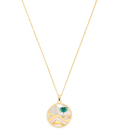 Yellow Gold, Diamond And Mother-of-pearl Cosmic Love The Cactus Necklace In Gray