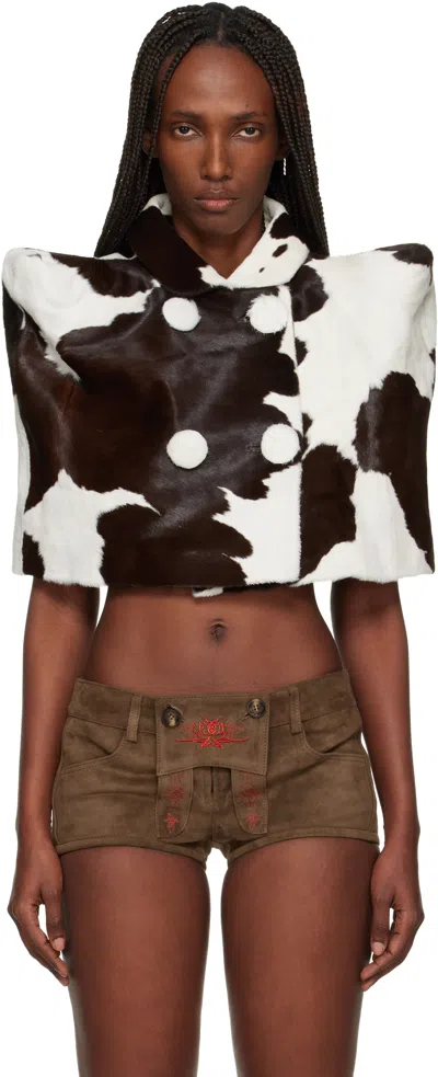 White & Brown Cow Poncho Shearling Jacket