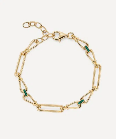 14ct Gold-plated Vermeil Silver Green Stone And White Topaz Chunky Hoop Earrings