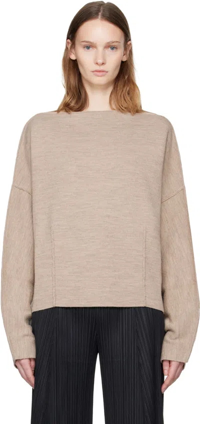 Beige Double Knit Boatneck Sweater In Brown