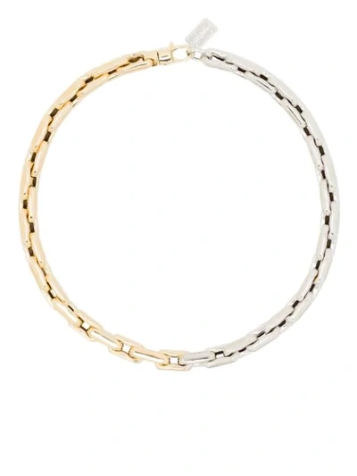 14k Yellow And White Gold Medium Square Link Necklace In Silver