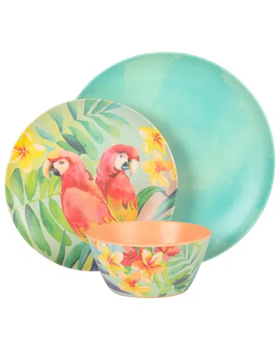 Tropical Parrots 12pc Melamine Dinnerware Set