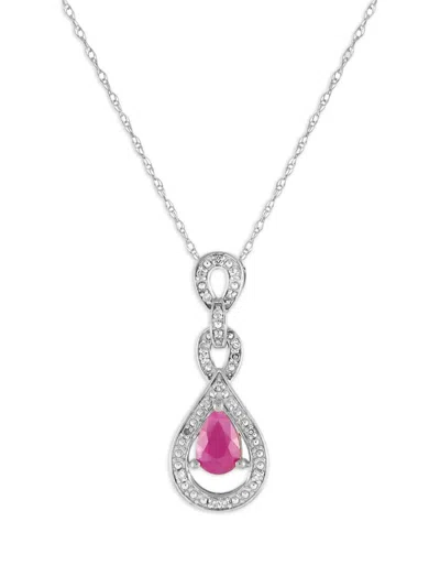 Pre-owned 14k White Gold Diamond And Garnet Necklace In 银色