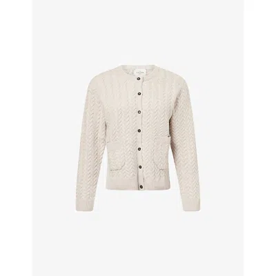 Womens Light Beige Basauri Cable-knit Cashmere Cardigan Xs In Animal Print