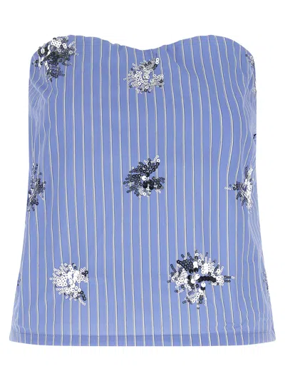 Aura Sequin-embellished Striped Top In Blue