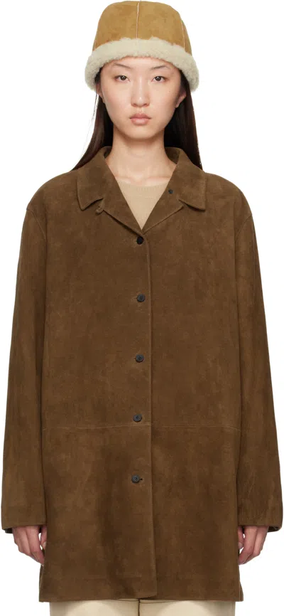 Tan Virgin Wool Handmade Muffler Jacket In Brown