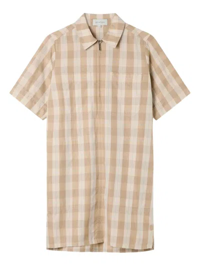 格纹正面拉链迷你衬衫裙