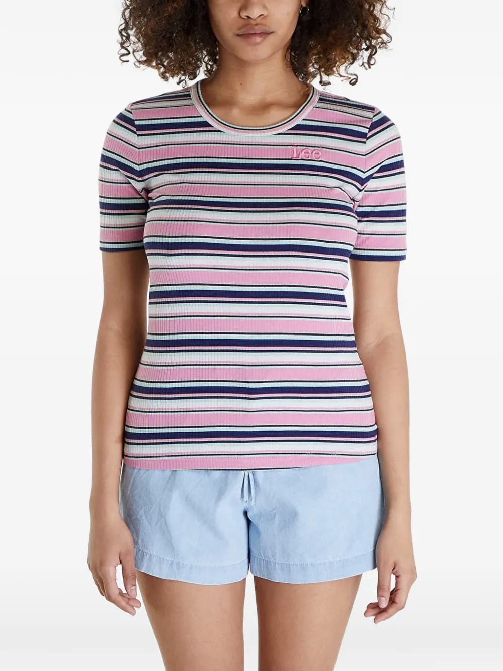 条纹罗纹T恤