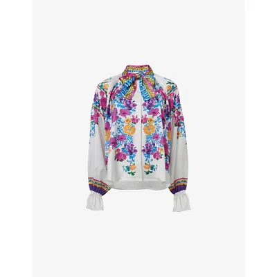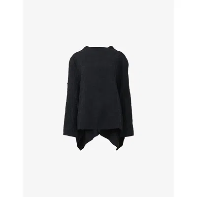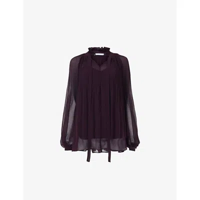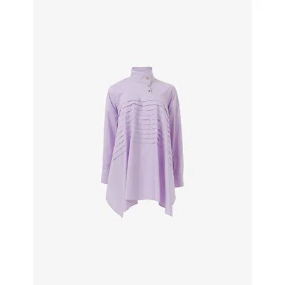 Womens Purple Asymmetric-hem Pintuck Cotton Blouse