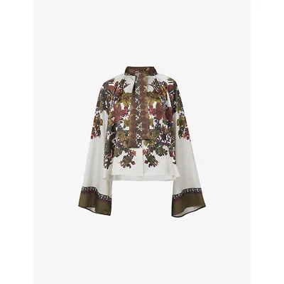 Womens Tie-neck Floral-print Woven Blouse In Brown