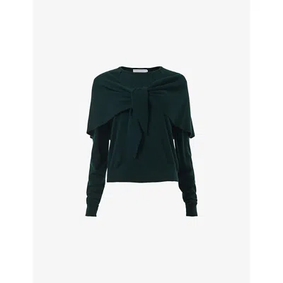 Womens Tie-scarf Knitted Wool-blend Jumper In Blue