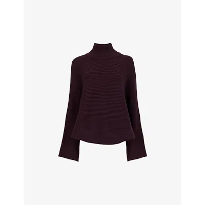Womens Purple High-neck Relaxed-fit Wool-blend Jumper