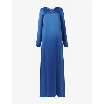 Womens Front-slit Silk Maxi Dress Blue