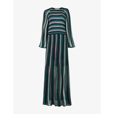 Womens Stripe-print A-line Knitted Maxi Dress Green