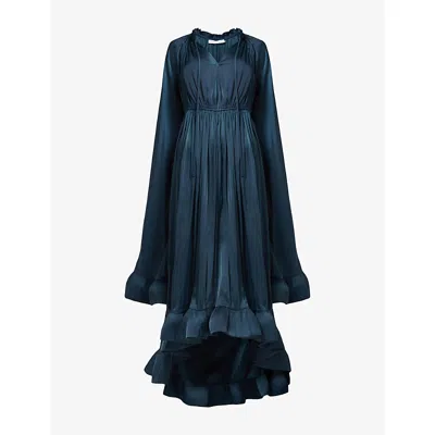 Womens Blue Cape-sleeve Frilled-hem Woven Maxi Dress