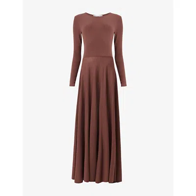 Womens Brown Long-sleeve Fit And Flare Knitted Maxi Dress In Multi