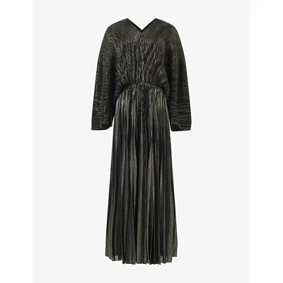 Womens Gold Long-sleeve Plissé Maxi Dress In Black