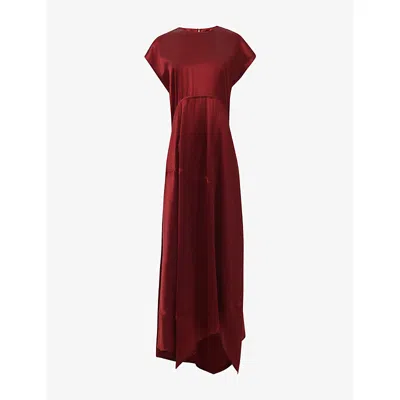 Womens Red Panelled Asymmetric-hem Satin Maxi Dress
