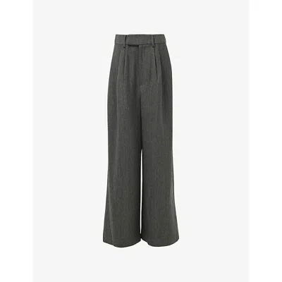 Womens Pleated Straight-leg Woven Trousers In Gray