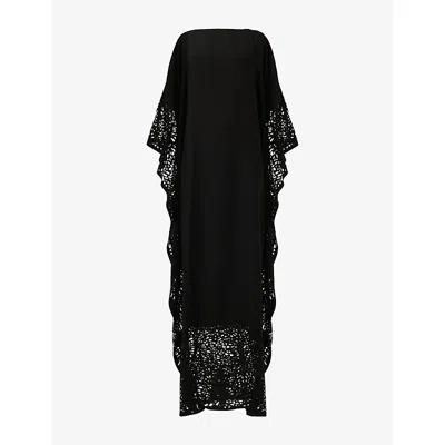 Womens Jewelled-shoulder Woven Kaftan In Black