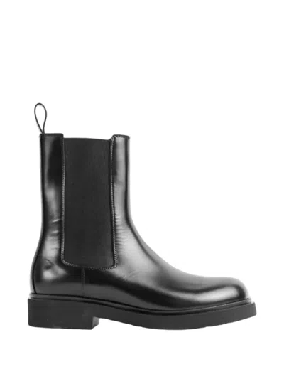 Black Oiled Leather Ankle Boots