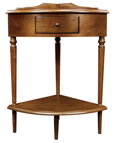 Coastal Solid Wood Corner Wedge Table With Drawer In Brown